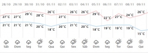 O Simepar já tinha previsto várias dias de chuva para Campo Mourão. Agora a previsão de água aumentou. O instituto está prevendo 47 mm no sábado, 62 no domingo e 75 na segunda-feira. O sol volta a aparecer só na terça, mas ainda assim chove mais 8,9 mm. A chuvarada, aliás, não para e vai pelo feriado de Finados à frente. Dia de sol, sol mesmo, somente em 9 de novembro.