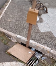 Tem bueiro com problemas e sinalização improvisada no centro de Campo Mourão. Fica na av. Manoel Mendes de Camargo, perto da rua Mato Grosso.