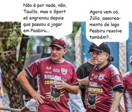 O clic é de Peabiru, onde os prefeito Júlio Frare (da casa) e Tauillo Tezelli (Campo Mourão) se encontraram durante jogo do Sport pela Terceirona. Estavam com camisa do time e tudo. O Leão do Vale, que está nas semifinais da competição, vem jogando em Peabiru por causa das obras da pista de atletismo de Campo Mourão.