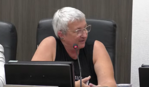 Elvira Schen (Cidadania), vereadora em Campo Mourão, sobre críticas às "patinhas" pintadas na sinalização em áreas onde transitam animais silvestres. Foi na sessão desta segunda-feira, durante a discussão de requerimento do vereador Edilson Martins, para que a prefeitura estude medidas para que se diminua o atropelamento de animais silvestres na rua Antonio Bueno de Camargo, na região do Parque do Lago.