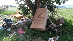 “Rua: Apolônia Staniszewski, fundos do supermercado Condor. Irresponsabilidade com o descarte de resíduos. Tem sido comum este tipo de cena aqui. Moro próximo ao local. Além de outros transtornos como o foco de larvas mosquito. Este tipo de local, serve para criadouro de escorpiões também. Por favor. Respeitem este bairro”