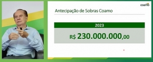 A antecipação das sobras da Coamo, este ano, será de R$ 230 milhões.
