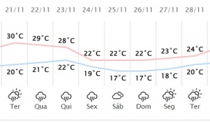 Sofrendo com o calorão em Campo Mourão? Calma. Seus problemas acabaram. Pelo menos é que diz a previsão do Simepar para os próximos oito dias. Vai chover, nem que seja um pouquinho, quase todo dia. Sem chuva, só sábado, mas fica nublado. E as temperaturas caem. A máxima vai de 30 graus nesta terça-feira para 22 graus na sexta. A mínima chega a 17 graus no fim de semana.