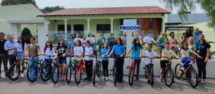 O Procon de Campo Mourão entregou nesta sexta-feira 40 bicicletas novinhas para alunos da rede municipal. Foram os vencedores de um concurso de redação com o tema “O que é o Procon e qual sua importância para Campo Mourão”. A promoção foi do órgão de defesa do consumidor em parceria com a Secretaria Municipal de Educação. O prefeito Tauillo Tezelli participou da enrtrega. O deputado Douglas Fabrício e o secretário de Estado Marcio Nunes (Turismo) também.