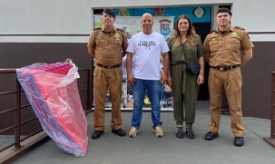 A Associação Dojo, que há mais de 20 anos desenvolve aulas de caratê em projetos sociais, vai iniciar parceria com o 11º Batalhão de Campo Mourão. Serão ofertadas aulas de caratê para uma turma de 30 alunos na sede da Polícia Miliar. Os recursos são do Ministério do Esporte. A sala onde irá acontecer as aulas já está sendo preparada. Na foto, a entrega dos tatames, com a presença do comandante do 11º BPM, tenente-coronel Willian Dieimes Silveira.