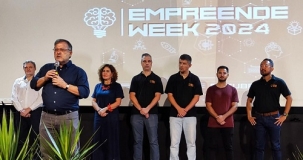 Tauillo Tezelli, prefeito de Campo Mourão, ao discursar no evento de lançamento do Empreende Week 2024; nesta segunda-feira.