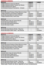 O Cartório Eleitoral de Campo Mourão faz plantão neste fim de semana. Vai atender das 9h às 17h tanto no sábado como no domingo (sim, no domingo também até às 17h). Detalhe: nestes dois dias haverá transporte gratuito de eleitores dos bairros até o Fórum Eleitoral (e a volta também). Confira na tabela acima os locais e os horários. E lembre-se: o prazo para regularização do título de eleitor vence na quarta-feira.