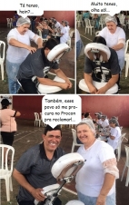 Aconteceu no último sábado, no Lar Paraná, uma ação comunitária com uma série de serviços prestados numa escola do bairro. O Procon de Campo Mourão foi um dos órgãos que esteve por lá para fazer atendimentos. O diretor Sidnei Jardim, no entanto, não perdeu a chance de também ser atendido. Conferiu a pressão arterial e recebeu uma massagenzinha nas costas...