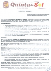 O prefeito de Quinta do Sol, Leonardo Romero, decretou situação de emergência.