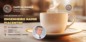 O Instituto de Engenharia do Paraná realiza no próximo dia 27 (8h), em Curitiba, o evento “Café da manhã com o engenheiro Namir Piacentini”. O ex-deputado estadual e ex-vice-prefeito de Campo Mourão vai ministrar palestra sobre “Os 50 anos de história da Construtora Piacentini”. Será no centro de eventos do IEP, com transmissão pelo Youtube. Inscrições e mais informações no link - http://tinyurl.com/yst2vp8k
