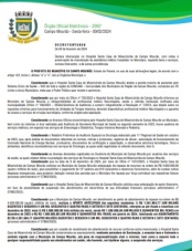 Artigo 14 do decreto 10.908/2024, da prefeitura de Campo Mourão, que prevê a intervenção do município no hospital Santa Casa. Conforme publicação no Órgão Oficial desta sexta-feira.