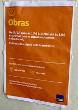 “Na parede um cartaz informando do fechamento do banco entre os dias 9/2 após 16h, até o dia 14/2 às 12h. Se meu pai não tivesse filhos que tem conta em outros bancos e puderam sacar dinheiro e lhe emprestar, ele teria ficado sem acesso ao seu dinheiro durante o período de reforma do banco.