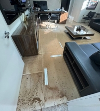 O presidente da Câmara de Campo Mourão, Edilson Martins, não pode usar seu gabinete na manhã desta quinta-feira. A sala estava alagada. E suja. O mesmo ocorreu em outros setores do térreo, como o Controle Interno e o Compras, por exemplo. A água da chuva da madrugada desceu a rampa nos fundos do legislativo e passou pela porta de vidro, atingindo corredores e salas.