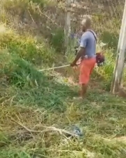 Quem está na roçadeira, cortando o mato no campo de futebol o conjunto Parque Verde é o vereador Tio Leco, de Campo Mourão. “Para mim é uma honra pode estar colaborando com a limpeza”, disse em vídeo postado em redes sociais. O vereador aproveitou e fez um discurso de conscientização contra o mosquito da dengue.
