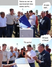 Os cliques são desta quinta-feira, em Janiópolis, durante a inauguração de um trecho de pedra irregulares. O deputado Alexandre Curi parece conferir a placa, observado pelo prefeito Ismael Dezanoski e pelo secretário de Estado Santin Roveda (Justiça).