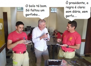 O clic é desta segunda-feira, no Corpo de Bombeiros de Campo Mourão, onde o presidente da Cãmara, Edilson Martins, foi ver como andam as doações para o Rio Grande do Sul. Acabou comendo um pedaço de bolo junto com o capitão Feijó e o subtenente Brero.