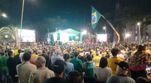 Somente no final da fala desejou “boa sorte” aos candidatos a prefeito e vice-prefeita, Rodrigo Salvadori e Naiany Hruschka.