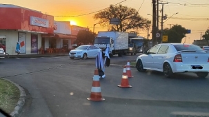 O trânsito no trevo do Lar Paraná virou um caos nesta sexta-feira por causa de um fio rompido.