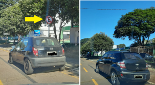 Em frente ao Centro Social Urbano tem placa e tem faixa amarela indicação proibição para se estacionar, mas não adianta...