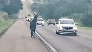 Cavalo solto na BR-272, saída para Farol, nesta quarta-feira.