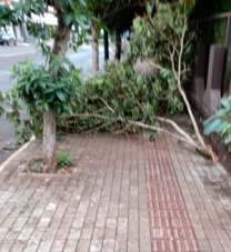 Na rua Francisco Albuquerque, bem no centro de Campo Mourão, galho de árvore deixa o pedestre sem opção a não ser o meio da rua.