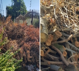 Galhos de árvore impedem a passagem de pedestres em calçada da rua Laurindo Borges, centro.