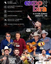 Saiu a programação completa da Expobira, que acontece em Ubiratã de 6 a 9 de junho. Pelo terceiro ano o evento será realizado no centro da cidade, inclusive o rodeio. A abertura terá show com o cantor gospel Fernandinho e com a dupla Fiduma & Jeca. Na sequência vêm Gino & Geno (dia 7), Gilberto & Gilmar (8) e, no encerramento, Clayton & Romário.