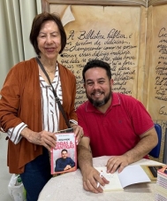 O advogado e músico Leandro Moreira, de Campo Mourão, lançou nesta sexta-feira seu primeiro livro. “Ideias & Cantigas” traz uma seleção de textos e poesias e foi viabilizado através da Lei Paulo Gustavo, do governo federal. O lançamento aconteceu na Biblioteca Municipal, com o livro sendo trocado por água de coco, que será repassada à Santa Casa. Leandro Moreira é integrante da Academia Mourãoense de Letras. Na foto, o autor com a também “imortal” Benedita Cristófoli.