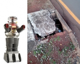 Bueiro na av. Goioerê, esquina com rua Rocha Pombo.