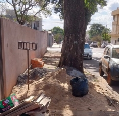 Materiais de construção ocupam toda a calçada (rua Harrison José Borges, centro).