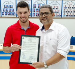 Janiópolis – A Câmara entregou moção a Gustavo Duarte pelo título de campeão paranaense de motocross. O piloto, de 18 anos, mora em Boa Esperança, mas é janiopolense de nascimento. A iniciativa foi do vereador Odair Barbosa.