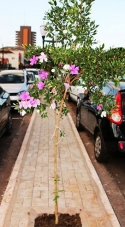 A prefeitura plantou nesta quinta-feira as mudas de manacá da serra no trecho do canteiro central da av. Capitão Índio Bandeira que está sendo revitalizado. A espécie é indicada para perímetros urbanos, já que não cresce muito (no máximo 12 metros) e é toda florida. Bonito fica, mas não precisava terem derrubado todas as outras árvores, né?...