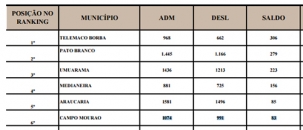 Campo Mourão foi a sexta cidade do Paraná que mais gerou novos empregos em abril.