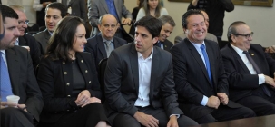 O deputado mourãoense Márcio Nunes participou na primeira fila.