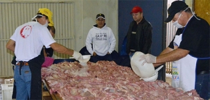 O prefeito Beto Costa foi acompanhar o trabalho. O serviço é feito com antecedência porque a carne precisa ficar na maturação. Foram colocados sete mil convites à venda e quase todos já foram comercializados.