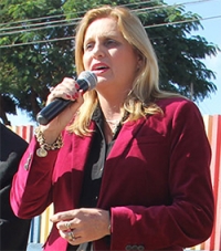 Regina Dubay (PR), prefeita de Campo Mourão, ao discursar na inauguração a Super Creche do jardim Indianópolis (Lar Paraná), nesta sexta-feira.
