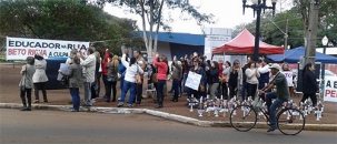 1) Em Campo Mourão, professores estaduais em greve seguiram nesta terça-feira mobilizados em frente à Estação da Luz e do terminal urbano.