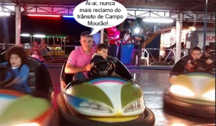 Olha aí quem foi dar uma voltinha na "pista de choque" do parque de diverões. Ele mesmo, o vereador Edilson Martins. E, cá pra nós: depois que a Polícia Militar informou que vai prender quem der carro para motorista sem habilitação, melhor não arriscar nem com os carrinhos bate-bate, né?...
