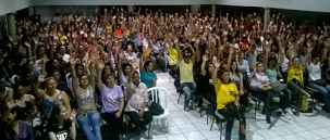 Por causa da chuva, a assembleia aconteceu no Espaço Allure.