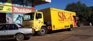 “Manhã de sábado, caminhão de bebidas fazendo entrega em rua do centro da cidade, na esquina com a av. Manoel Mendes de Camargo”.