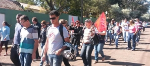 Professores em greve fizeram um novo coro em passeata por Campo Mourão, nesta quinta-feira: “Fora, Francischini!”.