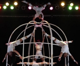 A produção mistura circo, teatro e dança, numa linguagem contemporânea.