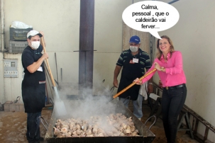 O clic é deste domingo, no conjunto Cohapar, onde aconteceu mais um porco no tacho promovido pela paróquia Sagrada Família. A prefeita Regina Dubay esteve por lá e deu uma passada pela cozinha, com direito a uma mãozinha aos cozinheiros. Ô dureza...