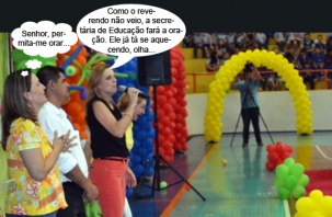 O clic é desta terça-feira, no JK, onde aconteceu a cerimônia de abertura dos Jogos Primários de Campo Mourão. A prefeita Regina Dubay discursa ao lado do vereador Jorge Pereira e da secretária de Educação, Karla Tureck. Do outro lado está a vereadora Nelita Piacentini.