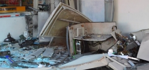 Olha só como ficaram os dois caixas eletrônico do Itaú, que funcionavam no posto do Tatu, em Moreira Sales. A explosão correu de madrugada desta quinta-feira. Seis homens armados renderam o guarda do posto, duas mulheres que esperavam ônibus e ainda atiraram numa camioneta que quis parar por ali. Todo o dinheiro foi levado. Tatu, o dono do posto, é ex-prefeito da cidade. Ah, pensa que só na prefeitura tem bomba, é?...