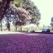 Até o chão fica florido nas praças centrais de Campo Mourão com os ipês roxos. Jair Elias