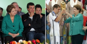 A presidenta Dilma Rousseff foi ao Maracanã entregar a Copa do Mundo vestindo uma roupa verde muito parecida com a que usou quando visitou Campo Mourão, ano passado. Será a mesma? Pode até não ser, mas que parece, parece! Aliás, até a calça preta que fez conjunto com a túnica é parecida com a usada em Campo Mourão. Olha aí, gastou dinheiro pra fazer a Copa e agora não tem pra renovar o guarda-roupa do Palácio...