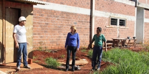 A prefeitura retomou as obras do barracão industrial do jardim Modelo, que estavam paralisadas há anos. O investimento é de R$ 409,2 mil, viabilizados através de financiamento no Paraná Cidade. A prefeita Regina Dubay foi lá ver como andam os trabalhos, juntamente com o presidente da Associação de Moradores, Rivaldo Santos. Ela lembrou que o barracão do Cohapar também está sendo reinciado. Ah, va ser uma barracãozaiada...