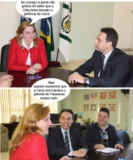 Os cliques são desta segunda-feira, quando a prefeita Regina Dubay recebeu a visita do novo gerente geral da Caixa Econômica, Leandro Dornella. Ele estava acompanhado do gerente de atendimento Nelson Alves Jr. Dornella vem de Paranavaí e substitui Célia Furlanetto, que foi para Umuarama.