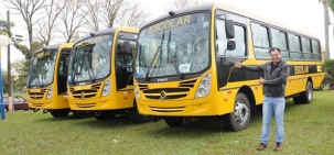 Mamborê - A prefeitura recebeu mais três ônibus escolares 0 km. Os veículos, no valor de R$ 721 mil, foram adquiridos com recursos do Governo Federal. O prefeito Nei Calori ficou too faceiro e fez pose ao lado dos busões. Segundo ele, falta aó a regularização das documentações para que os ônibus possam entrar no batente.